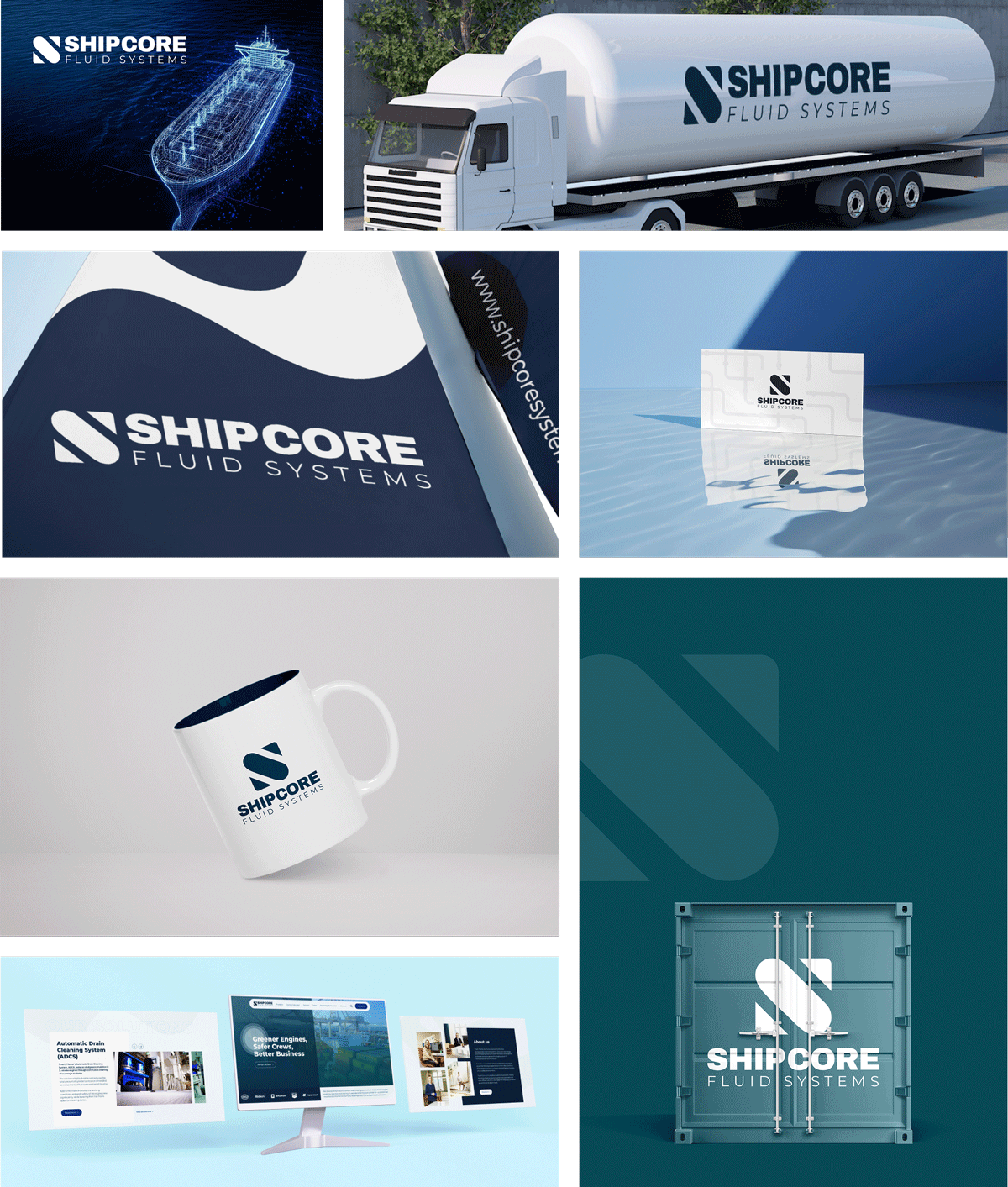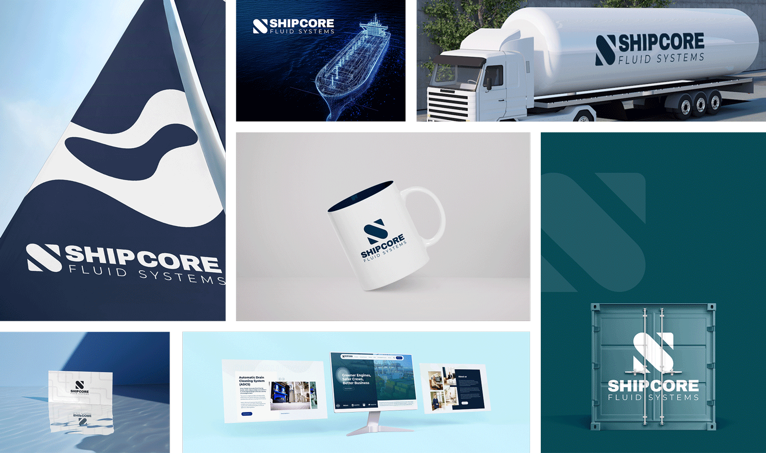 Gennem en iterativ proces landede vi på navnet ShipCore Fluid Systems. “ShipCore” signalerer, at virksomhedens produkt er hjertet i skibets drift, mens “Fluid Systems” sørger for at placere brandet helt tæt på sit kerneprodukt til branchen. Med URL’en shipcoresystems.com signaleres en etableret, global virksomhed med plads til produktudvidelse.
