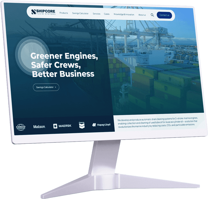 Vi designede og udviklede et nyt website med fokus på B2B-salg, troværdighed og værdiformidling. Som en del af løsningen byggede vi en custom savings calculator, så potentielle kunder hurtigt kan få indblik i den økonomiske og operationelle værdi af ShipCores løsninger. (ShipCore har i dag en offentlig “Savings Calculator” på websitet.)